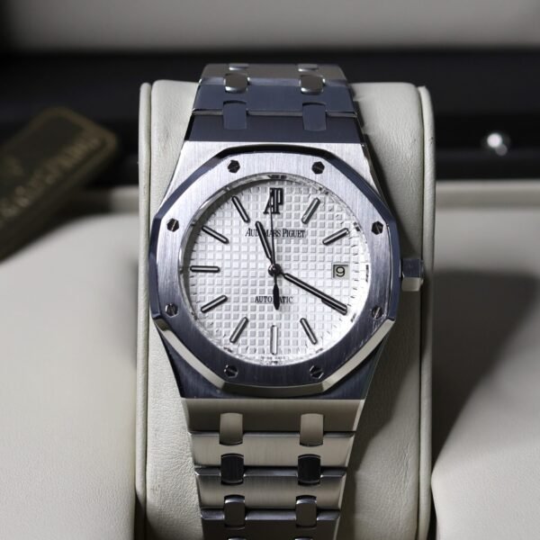 The iconic Audemars Piguet Royal Oak is a true symbol of luxury and craftsmanship. This 39mm steel case model from 2011 features the signature "Tapisserie" patterned white dial, combined with a sleek steel bezel and bracelet.