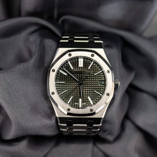 Elevate your wrist game with the 2023 Audemars Piguet Royal Oak 41mm Stainless Steel. This iconic timepiece seamlessly blends luxury and innovation, making it a must-have for watch enthusiasts and collectors alike. Crafted from premium stainless steel, the 41mm case exudes durability while maintaining a sleek profile that suits any occasion.The watch features the signature octagonal bezel and an exquisite Tapisserie patterned dial, available in a variety of striking colors. Its self-winding movement ensures precision and reliability, offering a power reserve that keeps you on time, every time. The integrated bracelet not only enhances comfort but also showcases the meticulous craftsmanship synonymous with Audemars Piguet.