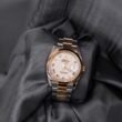 Featuring a classic champagne dial adorned with hour markers, the Datejust not only ensures precision but also exudes sophistication. The date function, magnified by a Cyclops lens, offers practicality without compromising style. The Oyster case provides water resistance, making it suitable for both formal occasions and everyday wear.