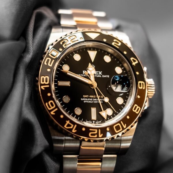 Introducing the 2022 Rolex GMT-Master II 18k Rose Gold and Steel, a masterpiece that seamlessly blends luxury with functionality. This exquisite timepiece showcases a striking 18k rose gold and stainless steel construction, exuding elegance and durability. The iconic bidirectional rotatable bezel features a dual time zone display, making it the perfect companion for the modern traveler. With its vibrant black dial and luminous hour markers, the 2022 Rolex GMT-Master II ensures readability in any lighting condition. The robust Oyster case guarantees water resistance and reliability, while the innovative Caliber 3285 movement delivers exceptional precision and a power reserve of approximately 70 hours. Embrace a legacy of excellence with the 2022 Rolex GMT-Master II 18k Rose Gold and Steel, a watch that not only keeps time but also elevates your style. Perfect for those who appreciate the finer things in life, this watch is a testament to Rolex’s commitment to quality and craftsmanship. Elevate your collection with this stunning timepiece today.Accepted Payments.